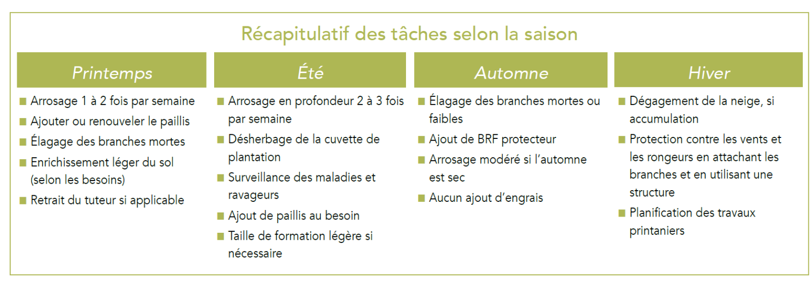 Maintenant pour le vif du sujet, l’entretien des arbres par saison!