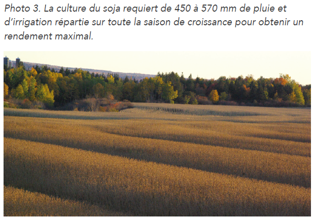 Les plans d’eau représentent 12 % du territoire provincial. Malgré la détention de 3 % des réserves mondiales d’eau douce, la province est confrontée à des pénuries d’eau potable de plus en plus fré-quentes. Ces pénuries sont attribuables à plusieurs facteurs, notamment la consommation excessive des usagers, la fragmentation progressive du couvert forestier, le drainage inconsidéré des terres humides et l’impact significatif des sécheresses. Il est à noter que la consommation d’eau par habitant au Québec est supérieure à la moyenne nationale. Les activités agricoles représentent en moyenne 13 % de la consommation totale d’eau, principalement destinée à l’irrigation des cultures (Photo 3). À titre comparatif, 41 % de l’eau est consommée par la population des quartiers résidentiels, tandis que 46 % est allouée aux industries, ateliers, commerces et institutions.