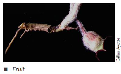 Sa fleur passe inaperçue et se cache au ras du sol. Observez bien sa structure brun pourpre en forme de petite urne. Elle est pollinisée prin-cipalement par des insectes de litière comme les mouches saprophages (qui se nourrissent de matières organiques en décomposition).