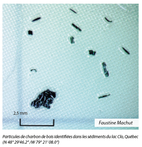 Pour mieux comprendre les effets spatio-temporels des feux de forêt sur les milieux aquatiques, une étude des sédiments accumulés dans plusieurs lacs de la Forêt d’Enseignement et de Recherche du Lac Duparquet (FERLD) a été mise en place en collaboration avec des chercheurs de l’Université du Québec en Abitibi-Témiscamingue et de l’Université de Montpellier, en France. Cette forêt mixte du domaine bioclimatique de la sapinière à bouleau blanc est unique puisque le territoire a été marqué par de nombreux feux successifs au cours des derniers siècles, notamment en 1760 et 1923, date des derniers grands feux, créant aujourd’hui une mosaïque forestière relativement diversifiée. La composition forestière régionale est dominée par des peuplements de feuillus comme le peuplier faux-tremble (Populus tremuloides Michx.) et le bouleau à papier (Betula papyrifera Marshall), des espèces pionnières qui colonisent rapidement les zones brûlées et qui profitent des ouvertures créées par les incendies. Les forêts sont aussi composées de conifères comme le pin gris (Pinus banksiana Lamb.) ou l’épinette noire (Picea mariana Mill.,Britton, Sterns & Poggenb.), dont la régénération par les cônes sérotineux est favorisée par le feu. À plus long terme, on observe l’implantation d’essences plus tolérantes à l’ombre comme l’épinette blanche (Picea glauca Voss), le sapin baumier (Abies balsamea Mill.) et le thuya occidental (Thuja occidentalis L.), qui prennent le relais dans la succession forestière.