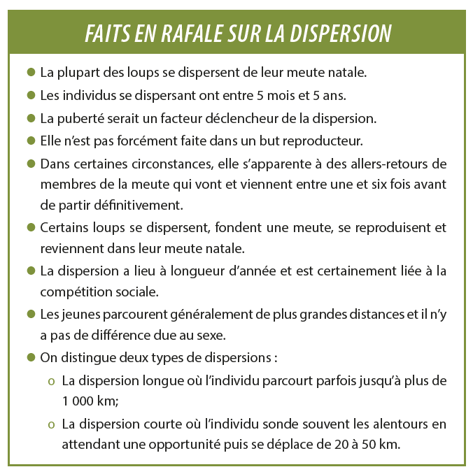 Les attaques peuvent également avoir lieu entre les individus d’une même meute pour différentes raisons : un reproducteur qui s’affaiblit progressivement, un louveteau qui veut prendre la tête de la meute, une meute qui devient trop nombreuse parce que les louveteaux de l’année précédente (yearlings) ont décidé de rester. Cependant, les yearlings restent rarement et si c’est le cas, ils ne restent pas plus de trois ans. En général, ils préfèrent partir pour éviter la famine, pour voir d’autres horizons ou pourquoi pas, espérer une rencontre amoureuse. C’est ce que l’on appelle la dispersion.