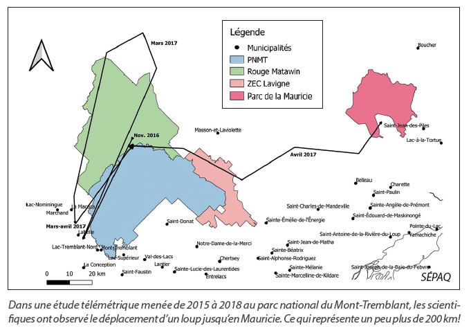 Après un voyage de plusieurs kilomètres, à la recherche d’un partenaire, notre louve trouve un territoire qui lui semble idéal. Il comporte une grande étendue forestière avec peu d’humains et très peu de routes. La forêt est parsemée d’anciens chemins forestiers et de rivières qui facilitent ses déplacements et qui lui permettent de voir sur une longue distance. La forêt est mixte à dominance feuillue, mais avec des îlots de conifères. Les peuplements forestiers ne sont pas trop âgés, ce qui favorise la présence de proies. Il y a aussi beaucoup de zones humides créées par les castors.