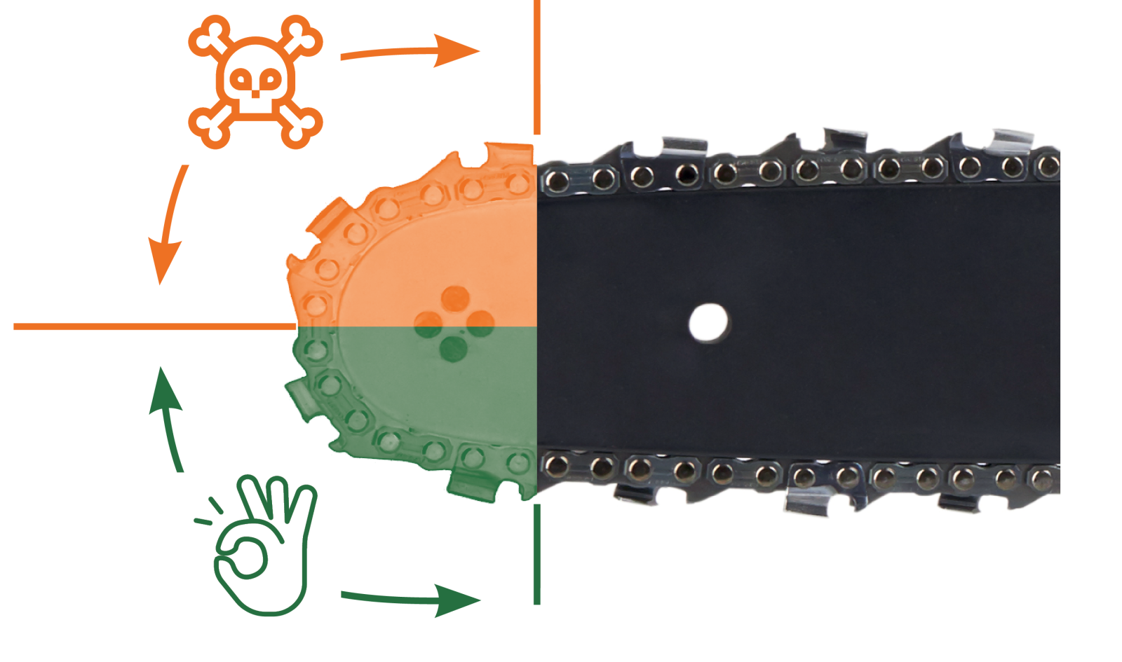 La scie à chaîne possède plusieurs dispositifs qui préviennent les blessures. On doit s’assurer de la présence et du fonctionnement de chacun d’eux.
