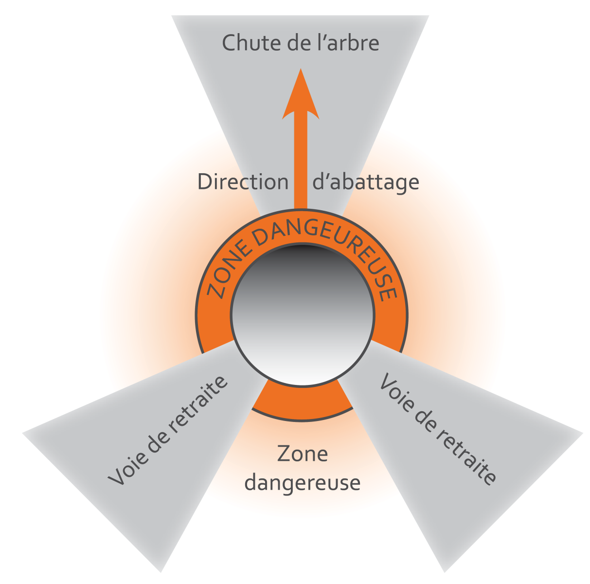 Les techniques de travail décrites ci-dessous sont tirées du document « Santé et sécurité du travail en forêt – Abattage manuel » du Comité paritaire de prévention du secteur forestier. Elles doivent obligatoirement s’accompagner d’explications de la part d’une personne compétente. Les centres de formations, syndicats et offices de bois régionaux organisent des formations en abattage manuel périodiquement. Informez-vous.