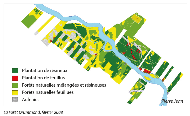 En février 2008, le Bloc vert, un organisme régional à but non lucratif dédié à la conservation de l’environnement, organise un colloque où près de 70 personnes échangent sur l’avenir de la gestion de la Forêt Drummond. Pierre Jean participe à cette rencontre. Plusieurs informations du présent texte viennent d’ailleurs de sa présentation.