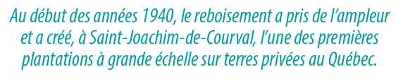 Alors, une idée que l’on peut qualifier d’avant-gardiste surgit, soit de reboiser tous les lots acquis depuis les années 1925. C’est le début d’une belle histoire. La compagnie y voit une occasion de produire des poteaux de transport d’électricité.