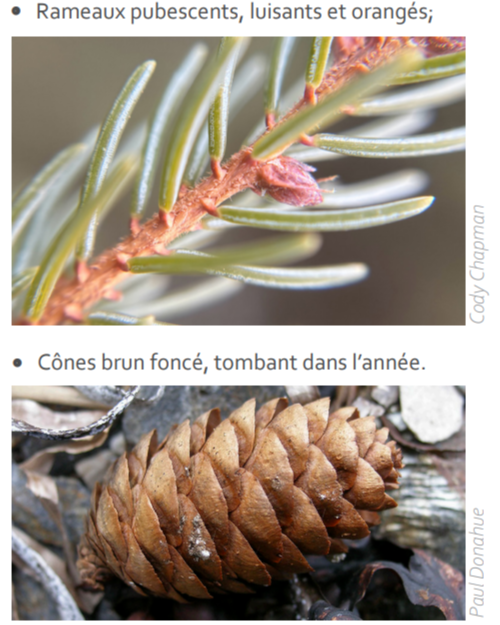 L'épinette rouge ressemble à l'épinette noire, mais elle se distingue par divers éléments, dont des :