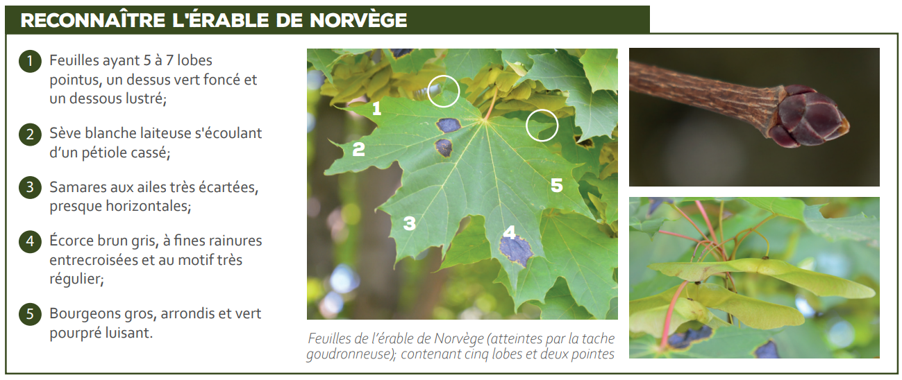 Remplacer progressivement les érables de Norvège présents par des espèces indigènes en commençant avec ceux situés dans un rayon de 1 km des milieux naturels.